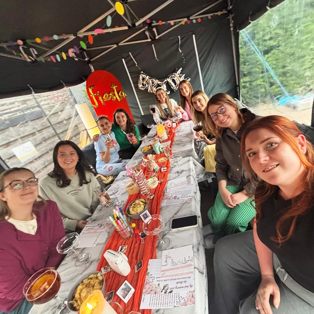 "I have just returned from my friend’s Hen Do at Hoxne Cottages… and WOW. What a place - it was perfect, everybody loved it. Twenty minute taxi into York (ideal for our bottomless brunch), a Tesco Express close by for the essentials we forgot, and a pub around the corner. The cottages themselves were spacious, clean, and had everything you need. The hot tubs were lovely, and the communal gazebo area was perfect for breakfast together and our evening ‘sip n paint’. Nicola & Tony were amazing the whole weekend, replied to any questions I had instantly, and were happy to leave us to enjoy ourselves. It was truly spectacular and I couldn’t have asked for more for the hen do. Thank you SO much, Nicola & Tony - we HIGHLY recommend."